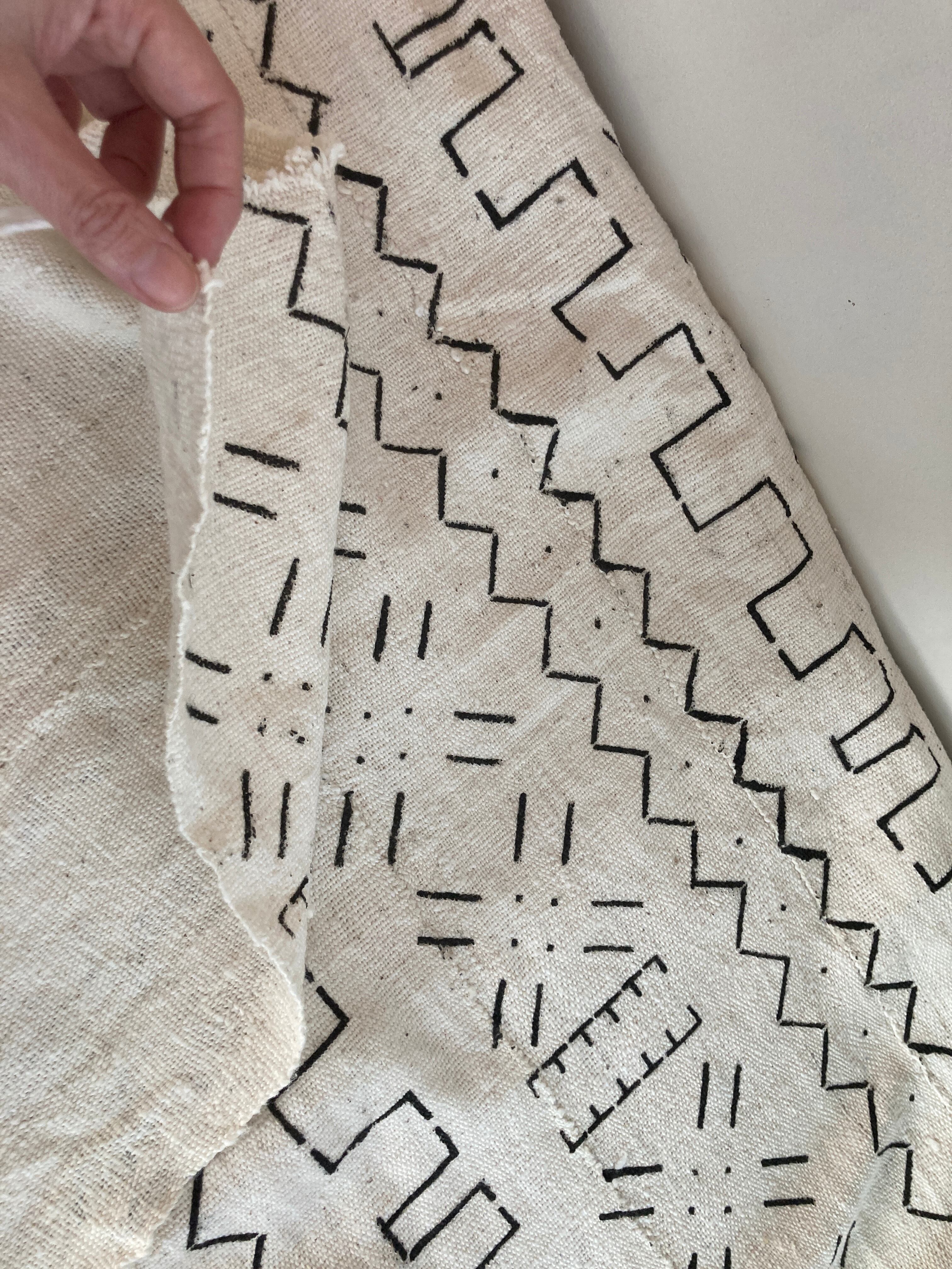 地色は生成、柄は黒に近いお色です。生地感はざっくりとした中肉の厚みです。